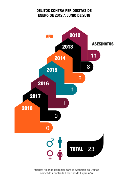 Uno de los elementos claves para entender este panorama es que los agresores no sólo son parte del crimen organizado sino que la presencia de victimarios políticos, sobre todo en los estados y los municipios, creció durante el sexenio de Peña Nieto. Por supuesto, los temas que más causaron amenazas, agresiones e incluso el asesinato de periodistas son los de investigación en corrupción, seguimiento de procesos electorales y política general. Es decir, muy lejos del espíritu democrático que presume el gobierno de este país, la crítica y denuncia son una causa para la represión hacia el ejercicio periodístico.