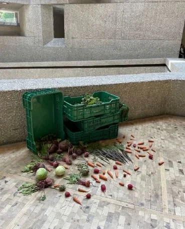 Pude hablar con Nina el día de la inauguración en una breve calma entre su ir y venir para asegurarse de que todos los performances de se activaran. La artista me habló de cómo su trabajo depende del estado de las cosas donde sea que esté. Por ejemplo habló de Scheme una de las piezas que integran la exposición, conformada por tres cajas de mercado con vegetales que se reabastecen cada dos semanas regados por el piso. “Cuando los vegetales llegan, el esquema de entrega del proveedor determina cómo será la imagen”...“si llegan muchas zanahorias, entonces la pieza estará llena de zanahorias”. Su trabajo abraza las diferencias de cada lugar al que llega y se adapta a la disponibilidad de recursos que encuentra.