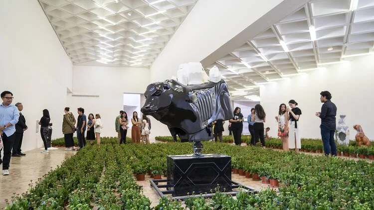 Un zapato verde detiene la puerta de la entrada principal del Museo Tamayo como si fuera un zapato cualquiera en una casa cualquiera. Esta provocación abre el camino para visitar “Casts”, de la artista danesa Nina Beier. La exposición, dice el curador Aram Moshayedi, desafía las nociones de lo que un museo puede y no hacer” Por ejemplo, crear un jardín mítico con más de 2 mil macetas, estacionado entre lo imaginario y lo real, que te transporta de una obra a otra: un jarrón roto, un zumbido que sólo pueden escuchar las personas de menos de 25 años, un toro mecánico que gira sin parar con unos recipientes de leche en polvo sobre su espalda.
