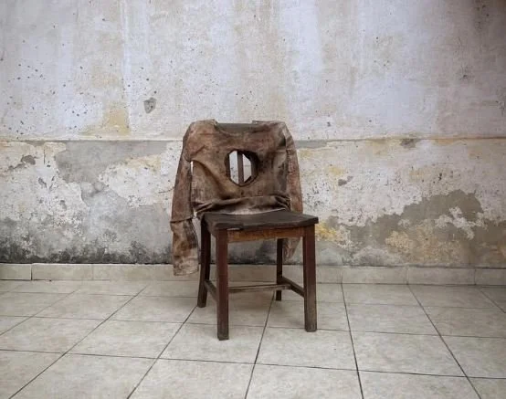 En la imaginación de quien mira la camisa que reviste el mueble, el enorme agujero que se abre en su centro se convierte en un símbolo de sufrimiento, la seña de una ausencia y el detonador de cientos de historias posibles sobre pérdida y duelo. Pensar en usar la prenda parece una tortura y la incomodidad que produce esa idea permite que la obra permanezca intacta en medio del espacio donde se percibe tan fuera de lugar.