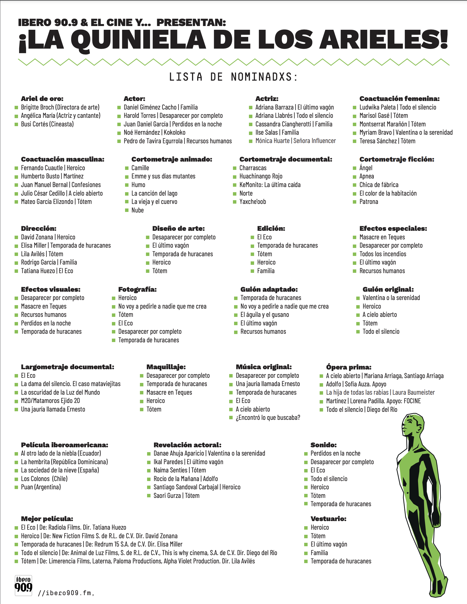 Con el equipo de El Cine y.. les traemos la quiniela del 2024. ¡Descárguenla y compártanos si ganaron sus favoritxs!